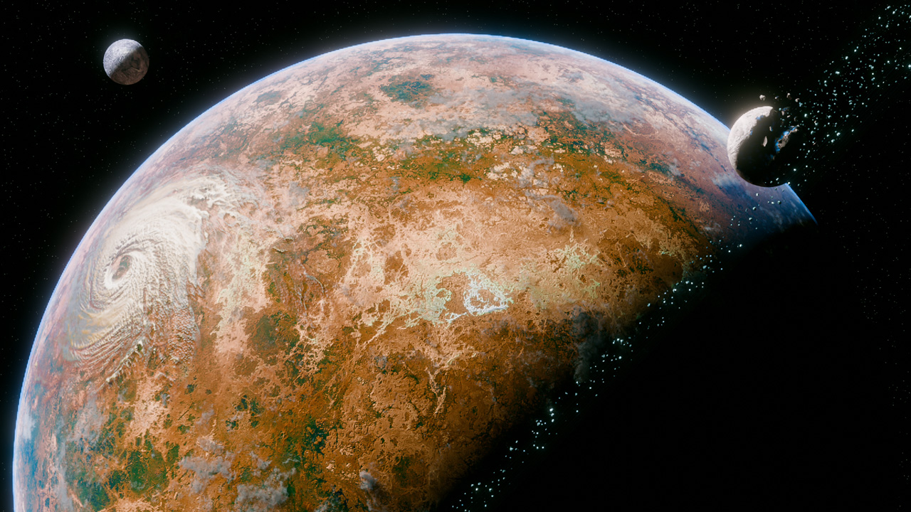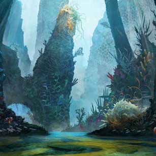 Once a vast ocean world, underwent a drastic transformation about 1,000 years ago when a nearby planet’s gravity evaporated its water and shattered its moon. Now, ice orbits the atmosphere, and gravitational anomalies distort its terrain. The planet's flora consists of aquatic plants adapted for land, mixed with species brought by colonists, while the hostile fauna, though sparse in predators, are cunning and dangerous. Rogax is also ravaged by radioactive storms and gravity shifts that create deadly ice falls or lift objects into the air.