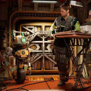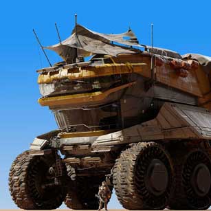 As the chief engineer, the protagonist harbors immense guilt over the incident, believing his oversight led to the wreck. Stranded and without options, he turns to smuggling and mercenary work for the planet’s dangerous clans. His heavily modified Discovery Vehicle is essential for navigating the hostile terrain. Proficient with a variety of weapons, he's a hardened, skeptical survivor. His only companion is Fifi, a quirky but dependable droid, assisting him on jobs.